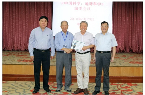 与会编委围绕如何提高刊物学术质量和扩大刊物影响力积极建言献策,为期刊的发展提供了许多建设性的意见。各位副主编在分享本学科专题组织工作等经验的同时,剖析了各自学科的不足之处,提出了各学科发展的具体举措。在编委会议上,朱作言总主编、傅伯杰主任和郑永飞主编为正副主编和编委颁发了聘书,为获得2017年度优秀编委、“最佳论文”和“热点论文”的代表颁发了荣誉证书。